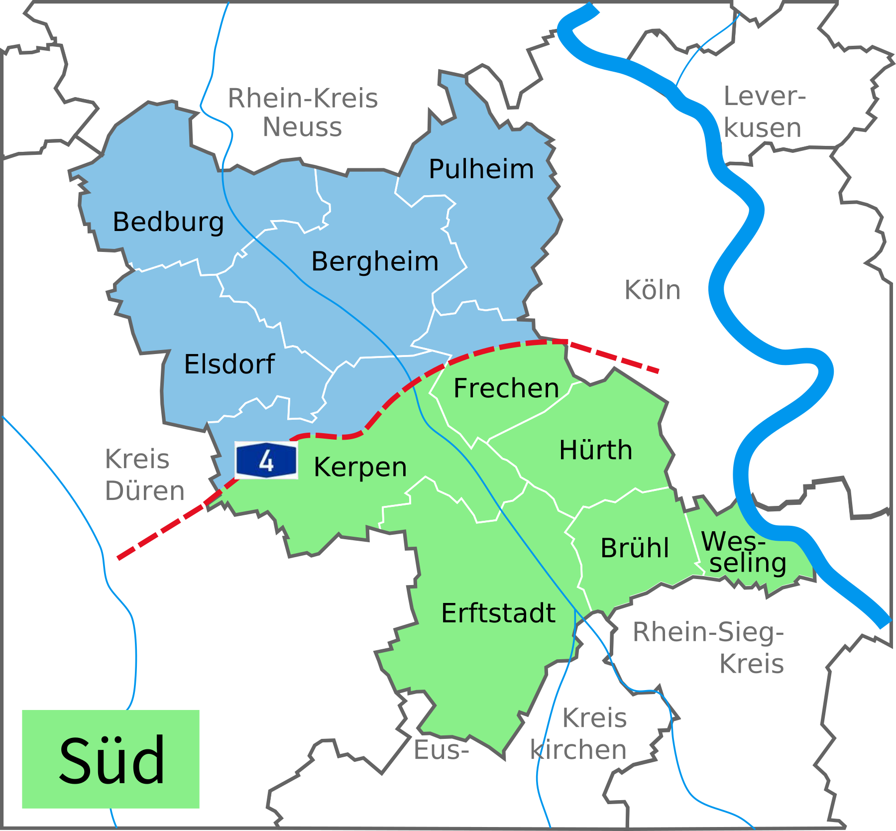 Aus organisatorischen Gründen gibt es für den nördlichen und den südlichen Teil des Rhein-Erft-Kreises zwei verschiedene Rufnummern.