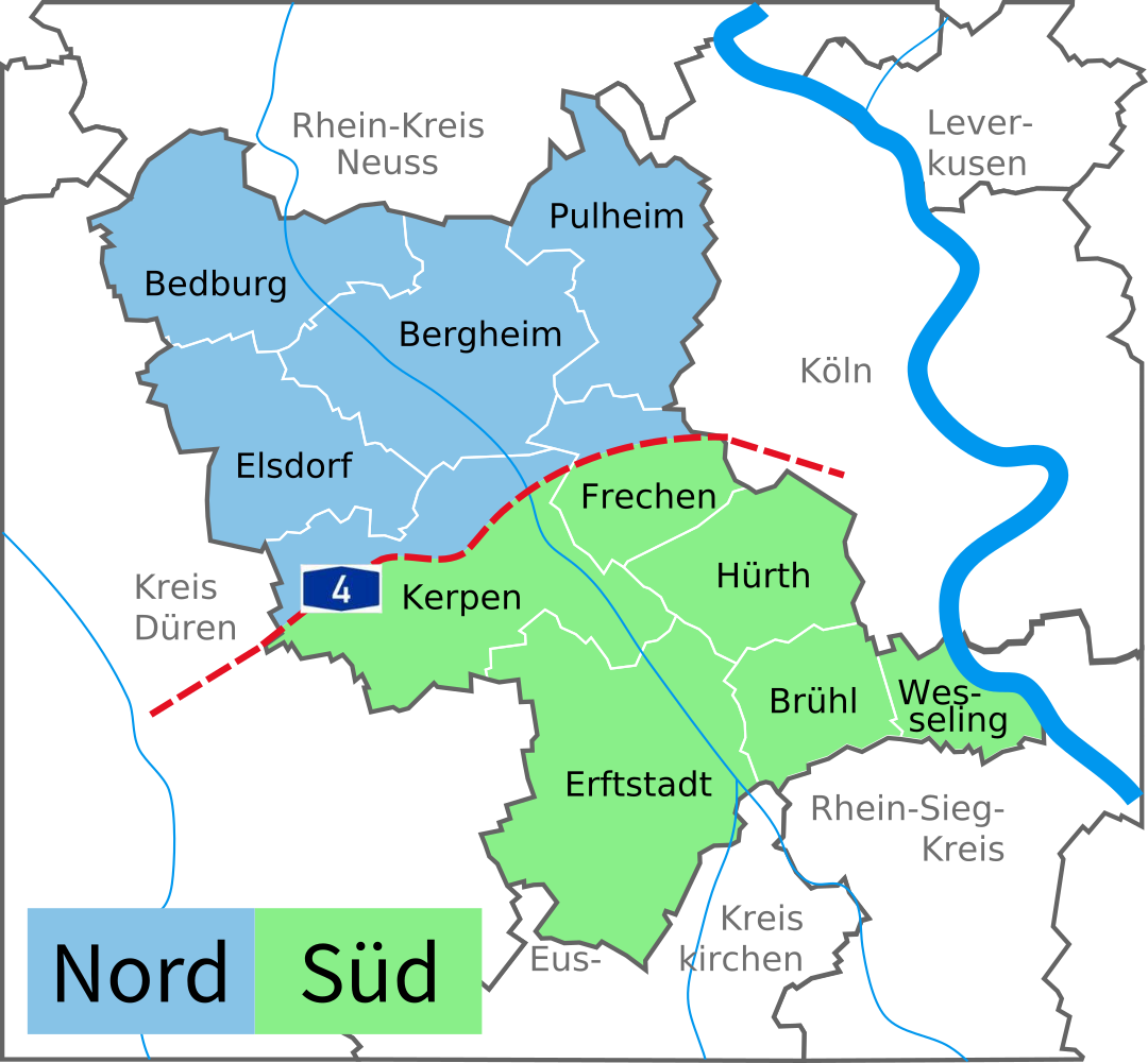 Aus organisatorischen Gründen gibt es für den nördlichen und den südlichen Teil des Rhein-Erft-Kreises zwei verschiedene Rufnummern.